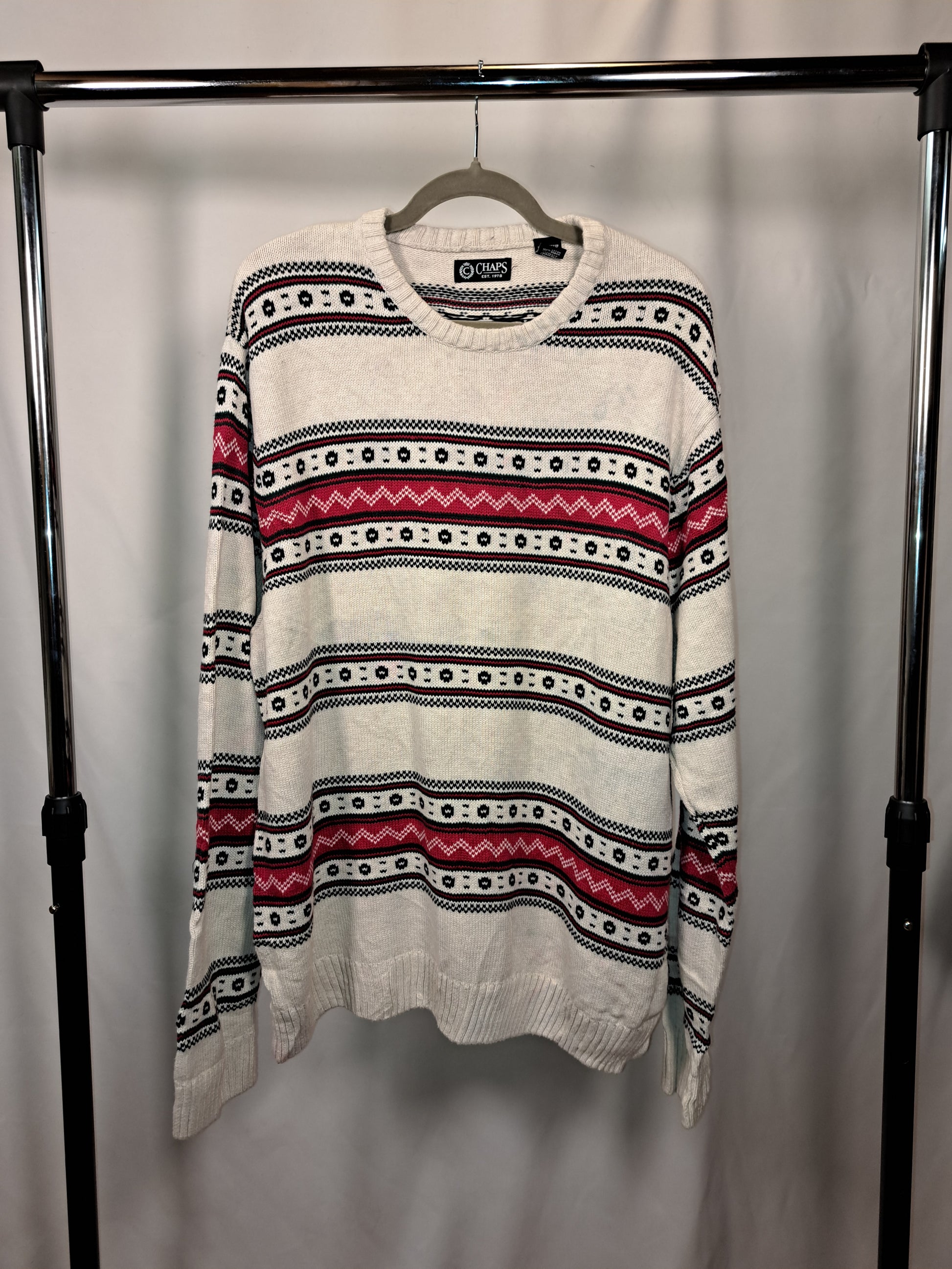 Chaps by Ralph Lauren – Vintage Fair Isle Strickpullover / Weiß–Rot–Schwarz / Größe L