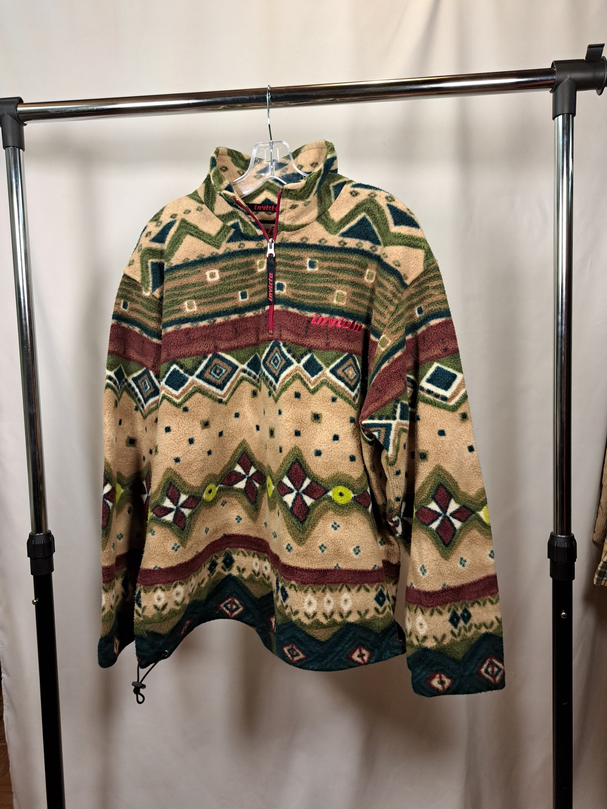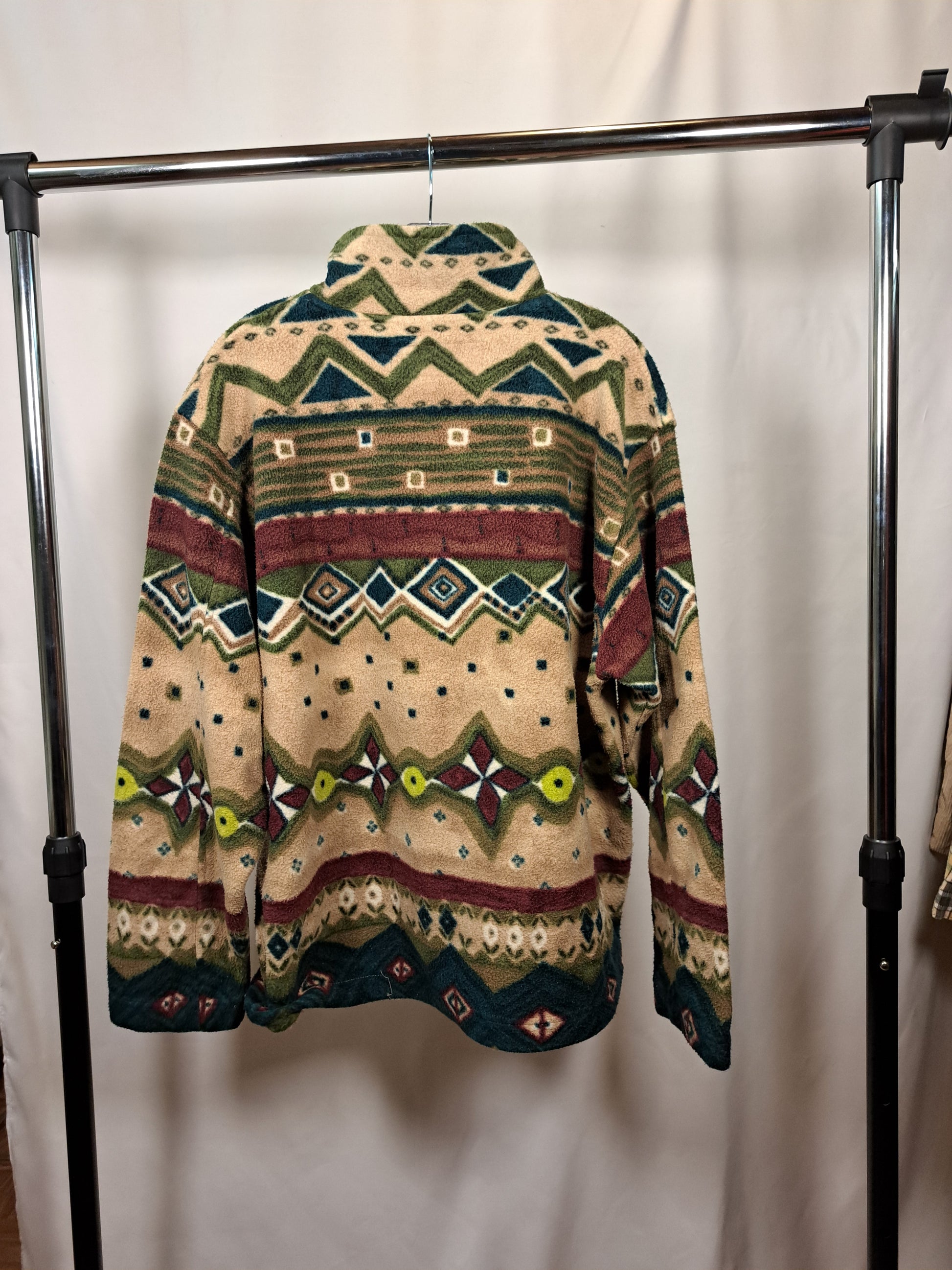 Invicta Vintage 90s Fleece Pullover / Aztec Pattern / Beige-Green / Size L