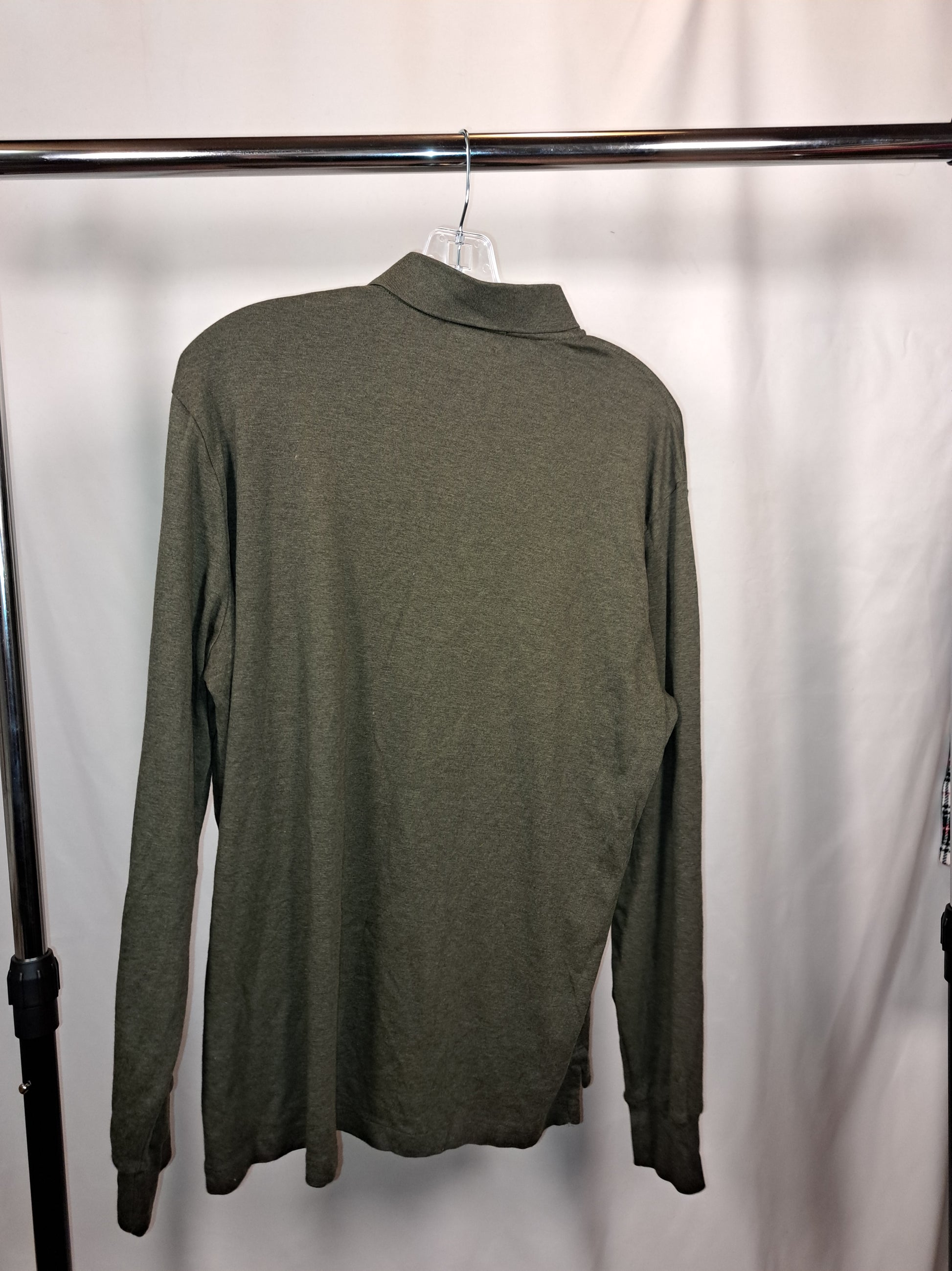 Vintage Polo Ralph Lauren Longsleeve – Olivgrün mit rotem Logo, Größe L | Classic Polo Style